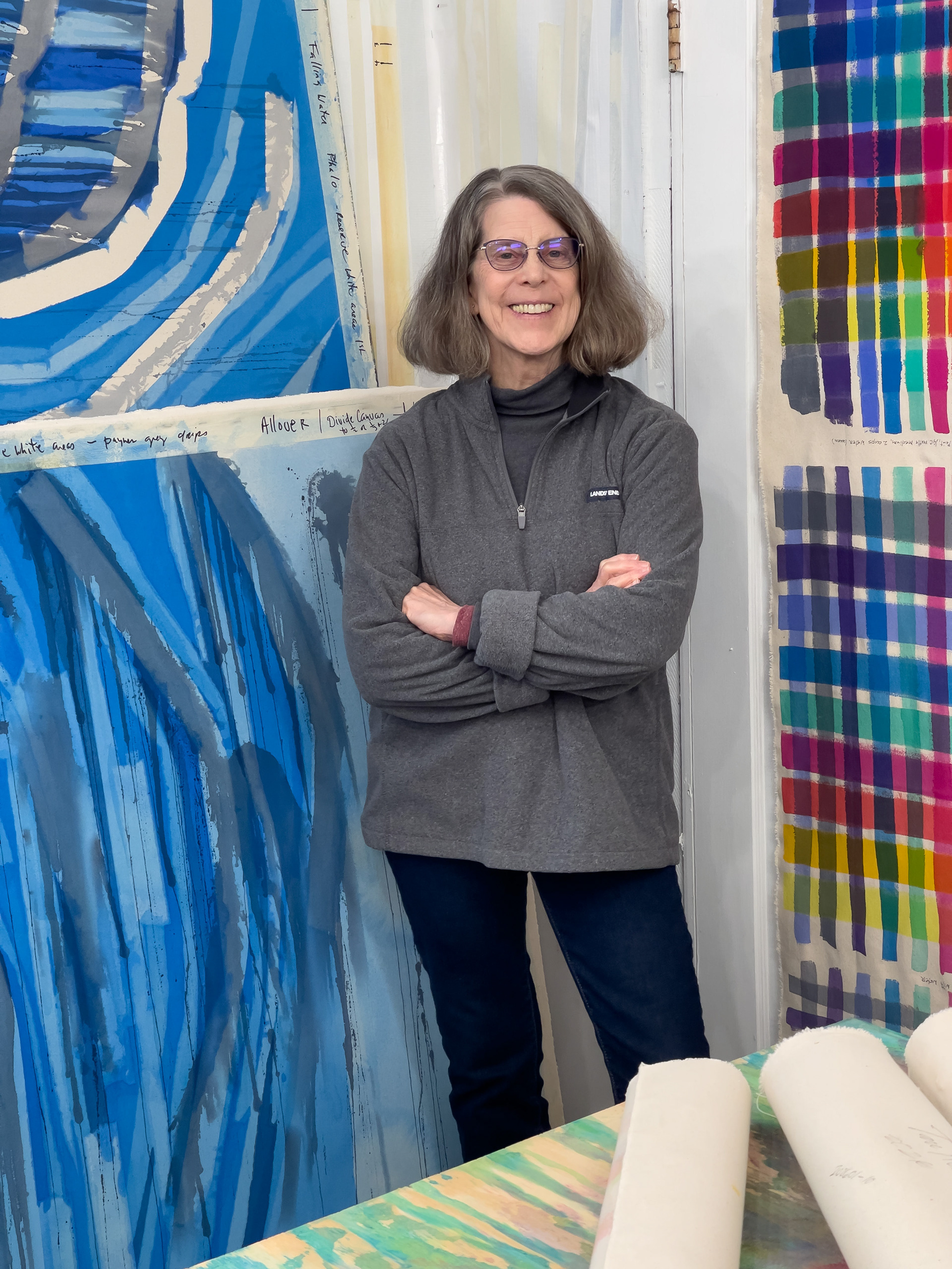 Her current work in painting is strengthened by the skills, techniques, sensibilities and aesthetics developed across a lifetime of working in multiple mediums. Decades of visual language find expression in her painting.